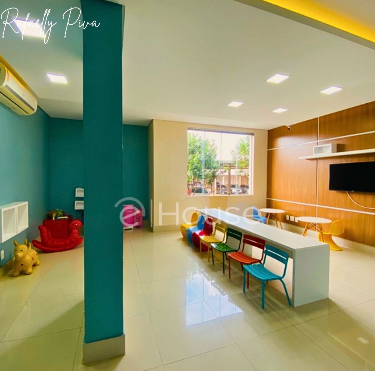 Sala de TV e jantar integradas