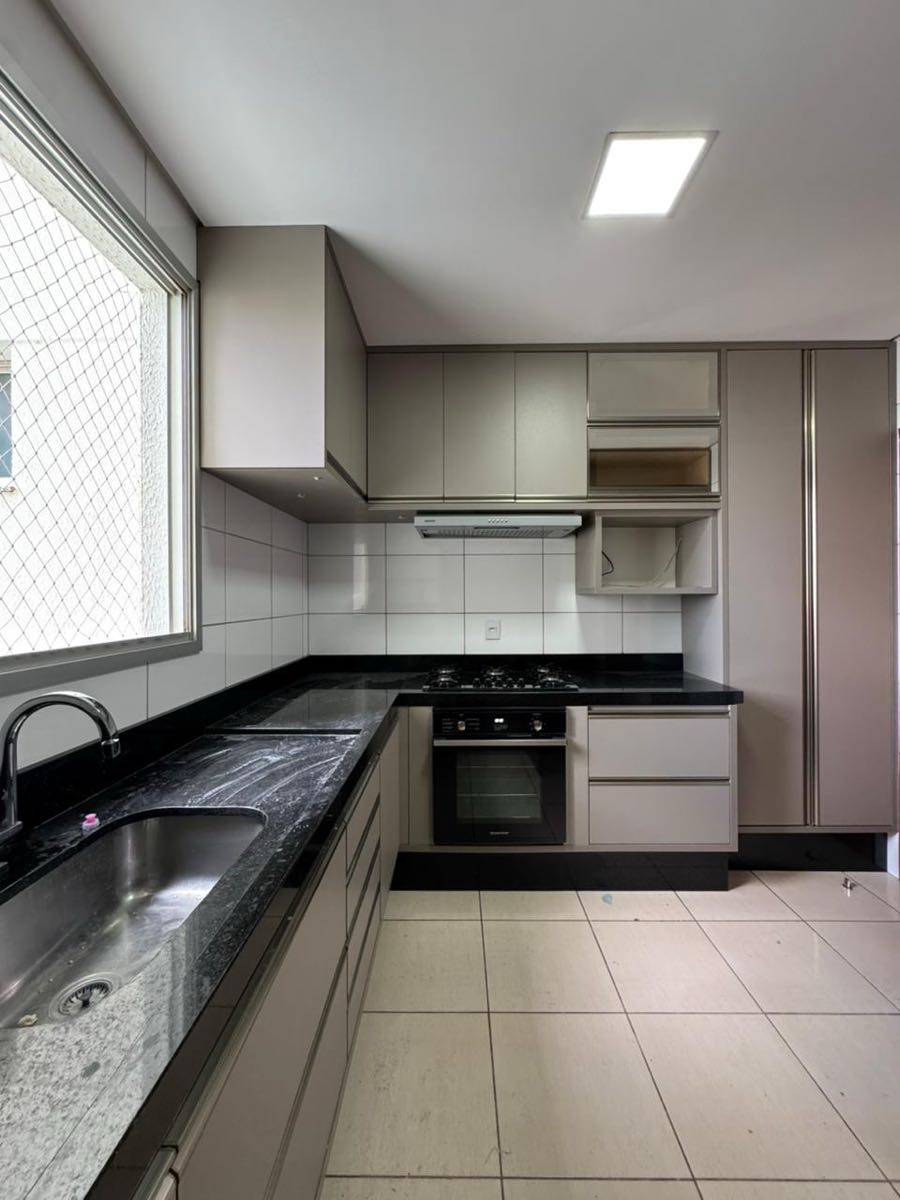 Cozinha com móveis planejados, fogão e forno