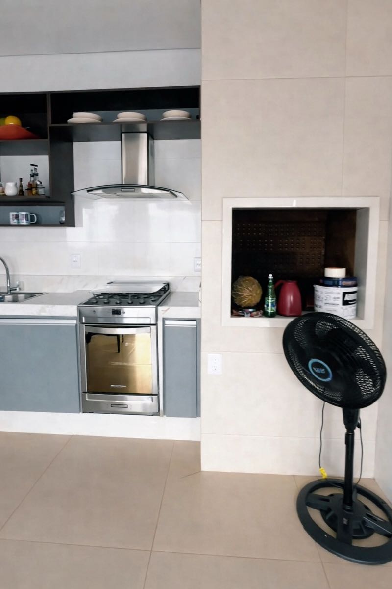 Coifa de inox e bancada em porcelanato (3m)